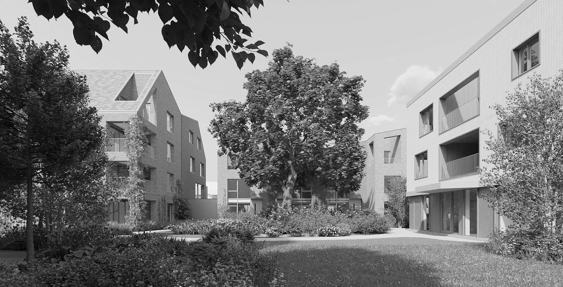 Hier woon je in het ritme van de seizoenen, met zicht op groen en het bruisende Mechelen vlakbij. De site ademt rust, maar leeft van verbondenheid. Het hart van het project vormt een weelderig binnengebied, ontworpen door landschapsarchitect Ars Horti. Oude lindes en een majestueuze tamme kastanjeboom blijven bewaard, een es krijgt een nieuwe plek. Samen creëren ze een natuurlijke luwte waar trage paden, speelplekken en ontmoetingsmomenten elkaar kruisen.