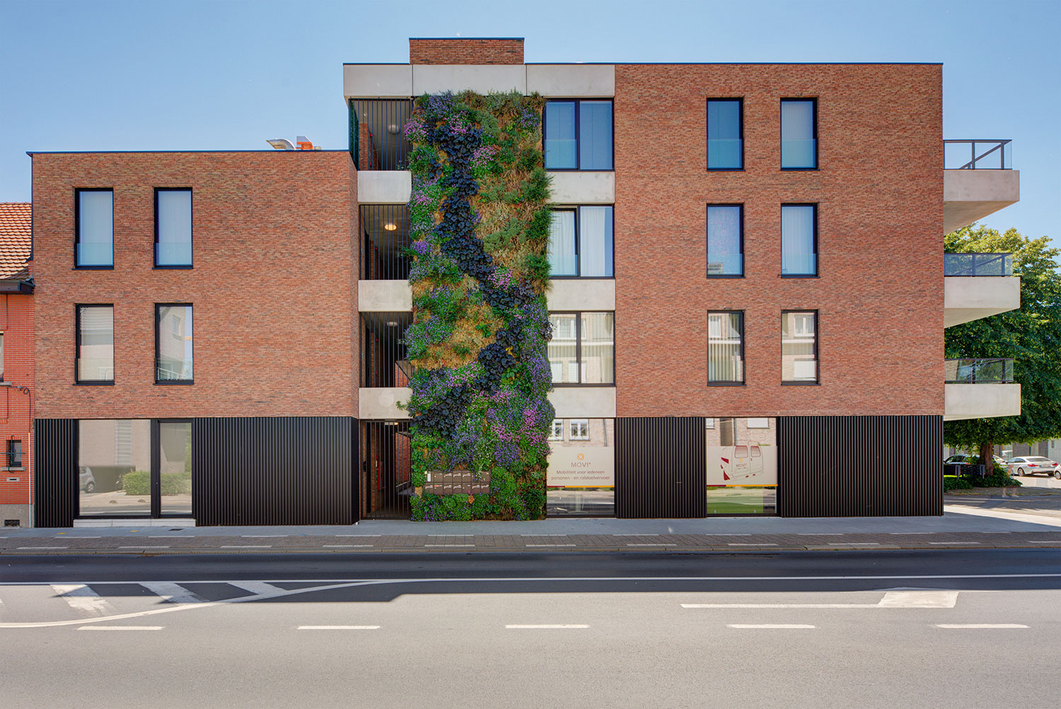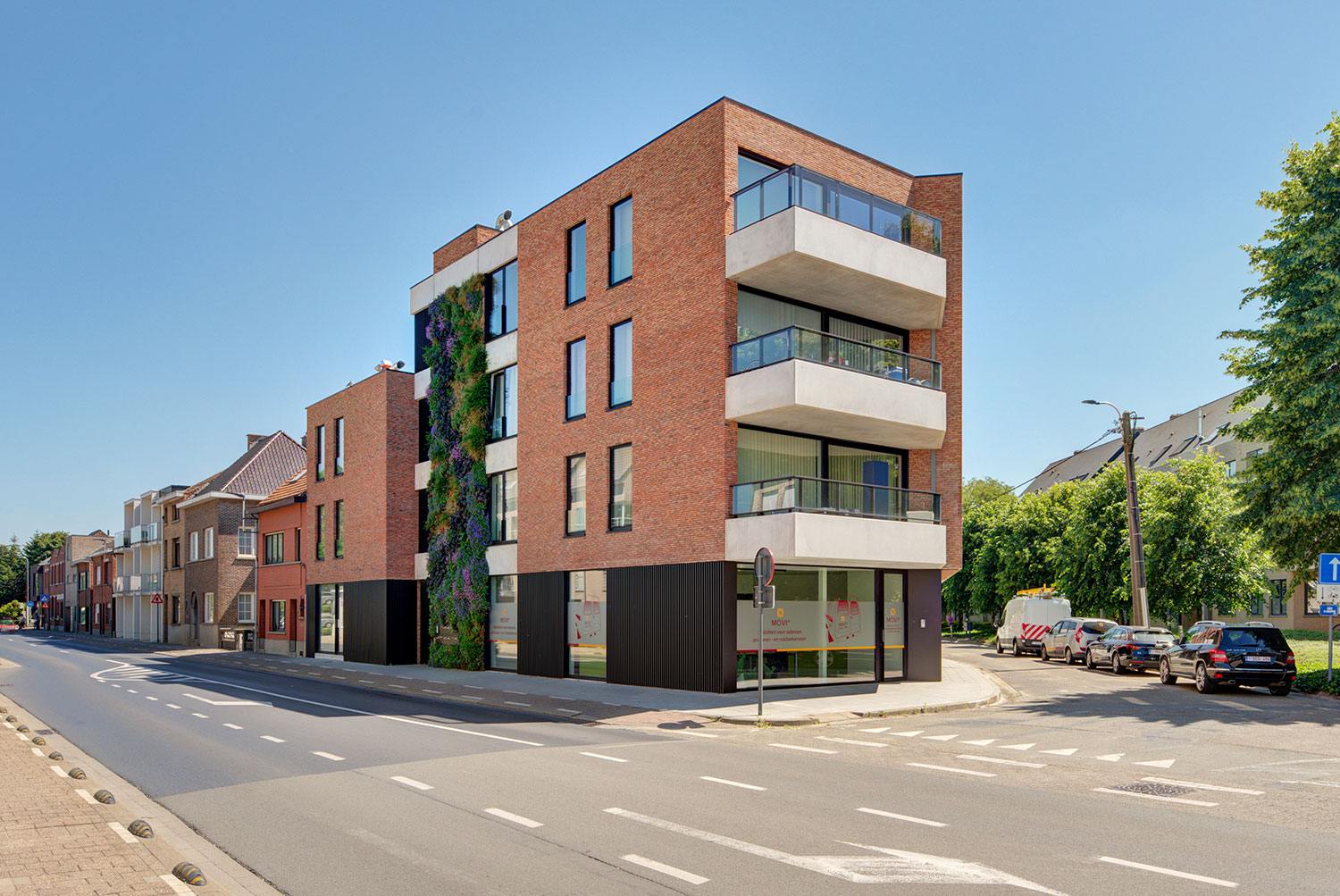 Residentie bestaande uit 13 appartementen met terras en 1 handelspand. De residentie beantwoordt helemaal aan de BEN-20 norm.