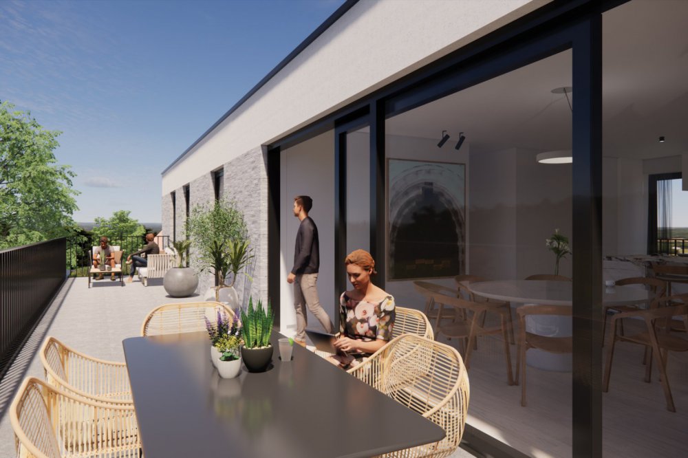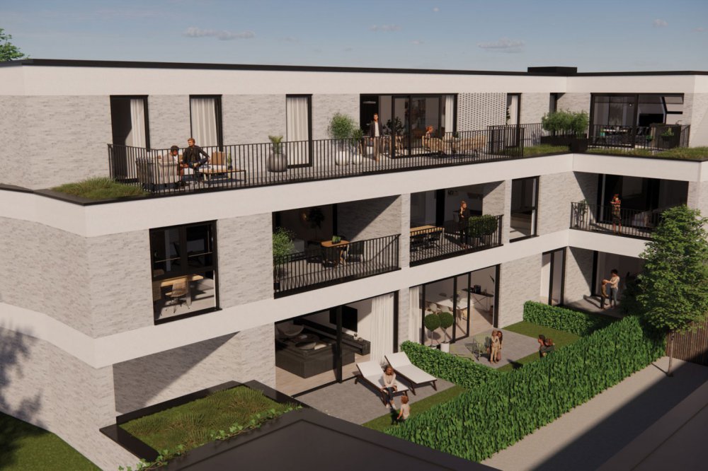 Ideaal gelegen in het centrum van Sint-Antonius voorziet Tinel 9 duurzame appartementen met ruime terrassen en/of tuin, 1 commerciële ruimte, ondergrondse autostaanplaatsen met bergingen en gemeenschappelijke fietsenstalling.